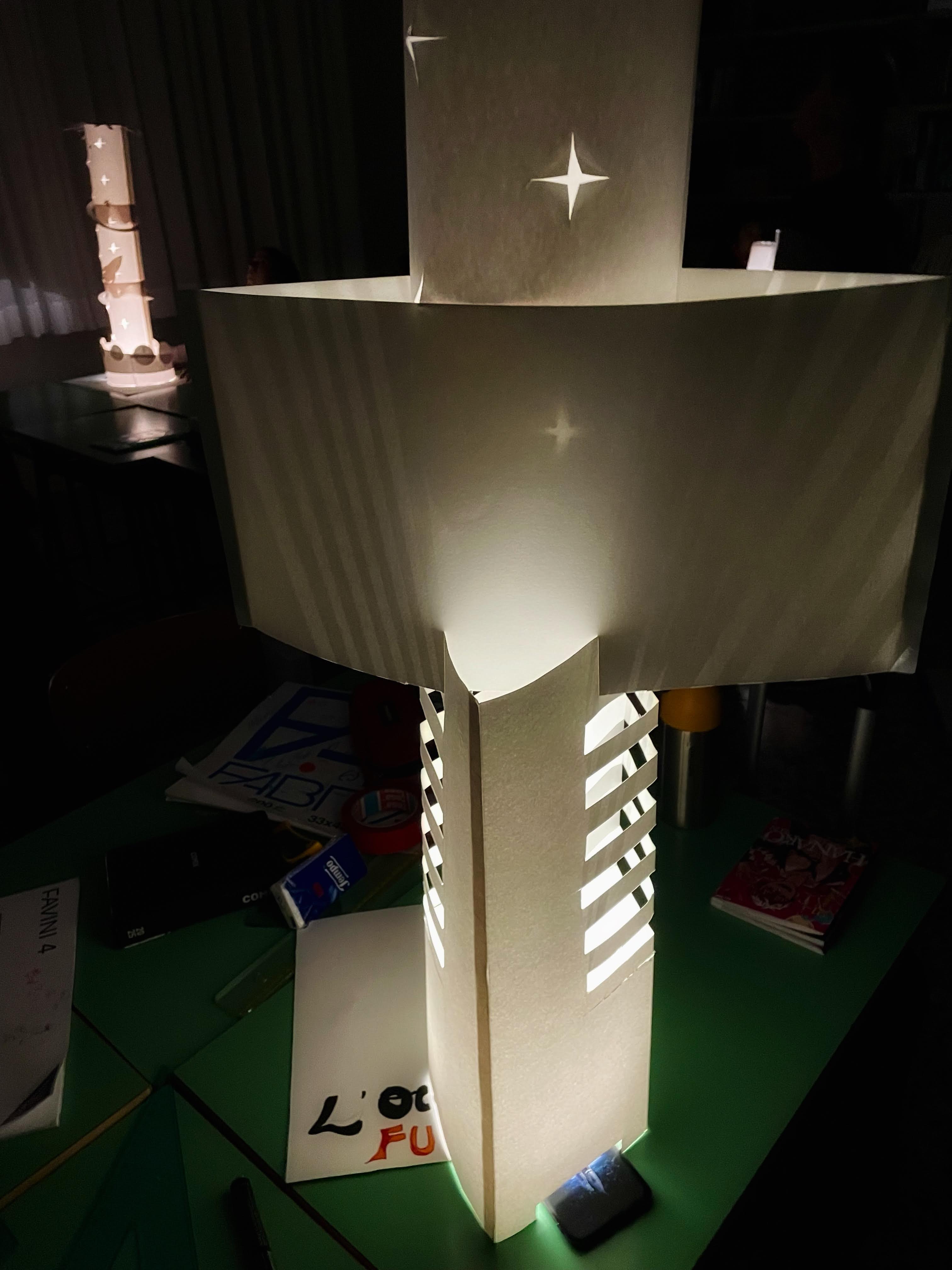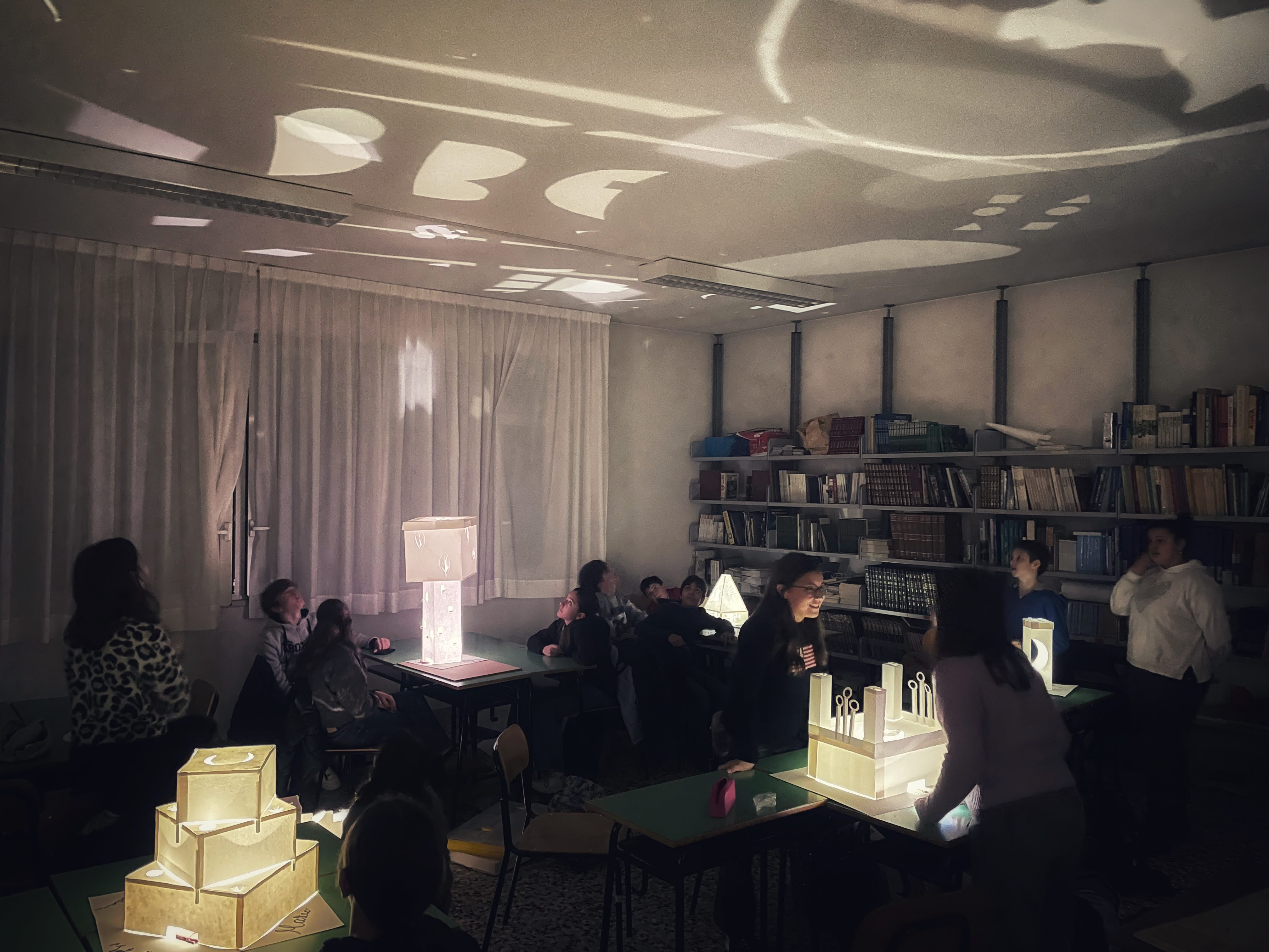 Dal progetto alla realizzazione di lampade attraverso il materiale più semplice e versatile che abbiamo a disposizione: la carta.La geometria diventa il tramite attraverso cui la materia può assumere forme che si animano grazie alla luce emanata da un piccolo smartphone e proiettano immagini e segni, facendo emergere la magia che ogni aula scolastica racchiude come uno scrigno: la fantasia dei ragazzi.